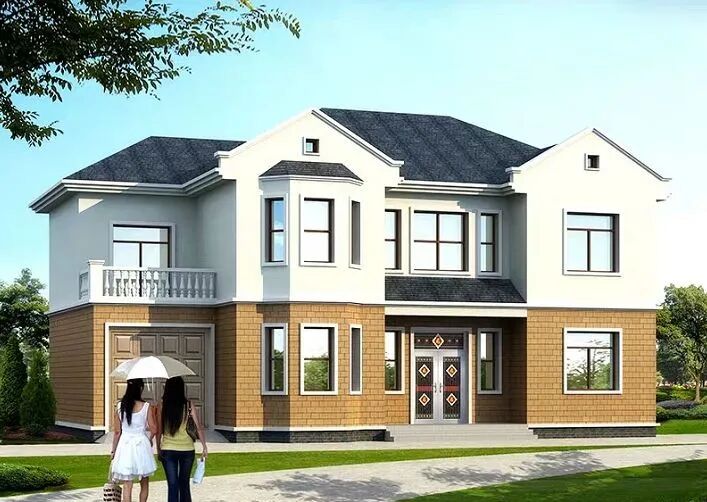 二层:客厅(附阳台)、卧室(附卫生间)、卧室、书房、卫生间、阳台。
