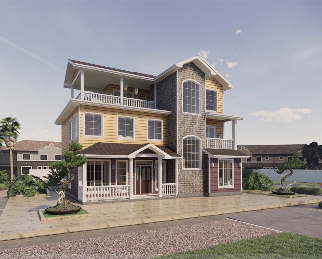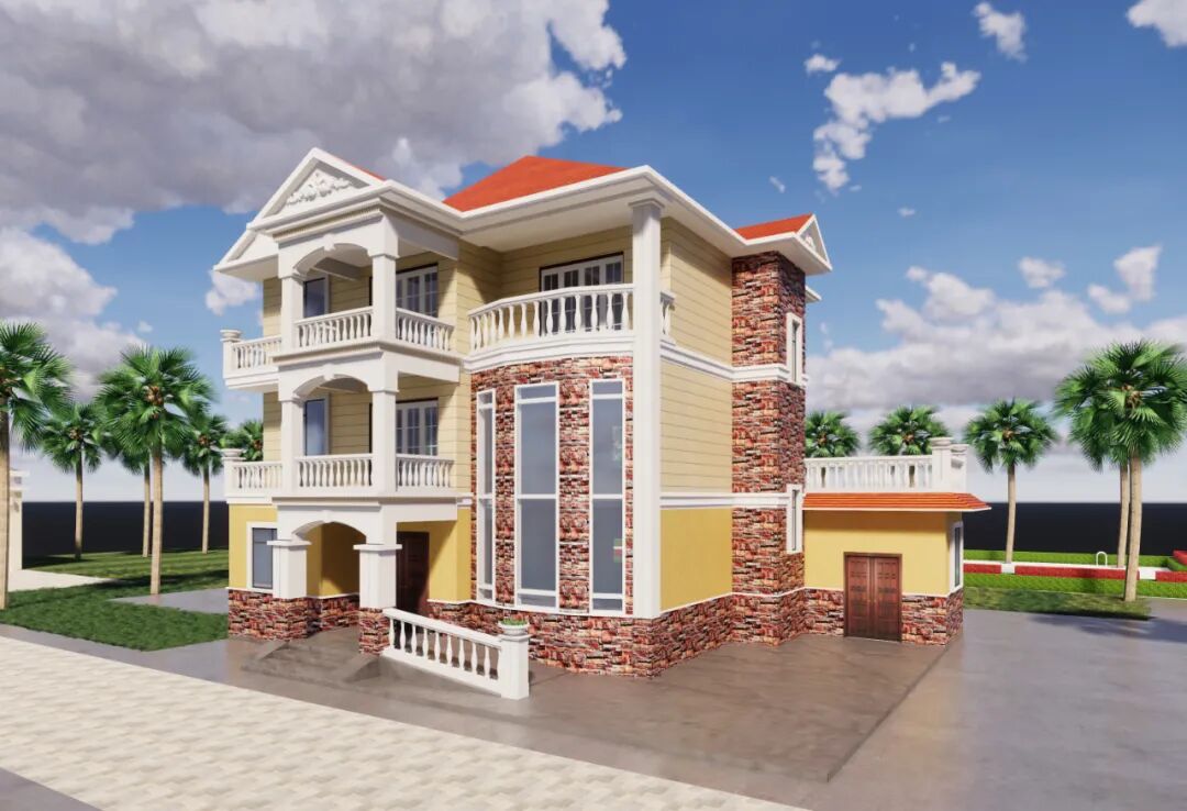 【3】 建筑面积:1层188平米,2层188平米,三层171平米 一楼层高3.1米,二楼层高2.9米,三楼层高2.8米 简欧风格 屋面:中国红彩砂沥青瓦