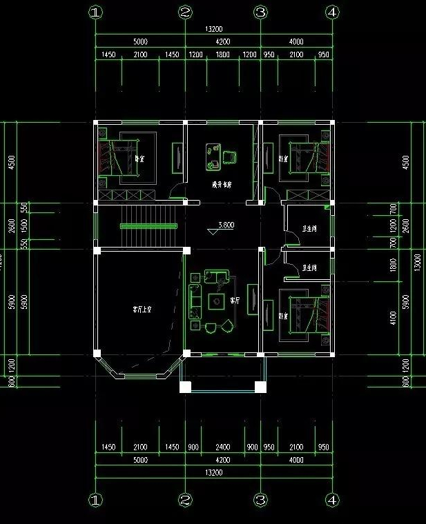 占地尺寸:13.2x14.2米 占地面积:187.44平方米 建筑面积:520平方米, 造价估算:30-35万左右