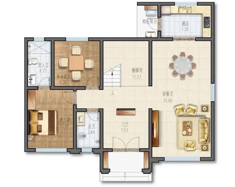 这款一层半农村别墅造型错落有致,整体配色自然和谐,这种立体感和艺术感让别墅显得十分洋气。