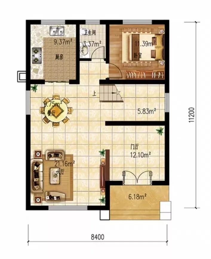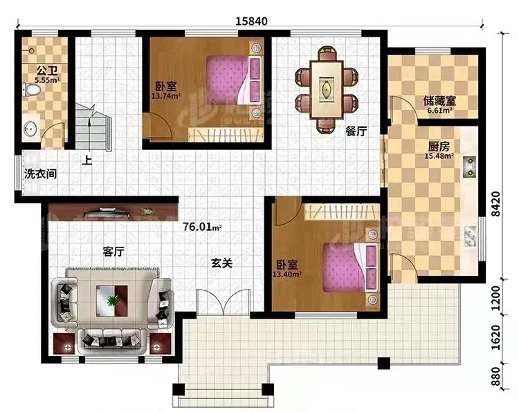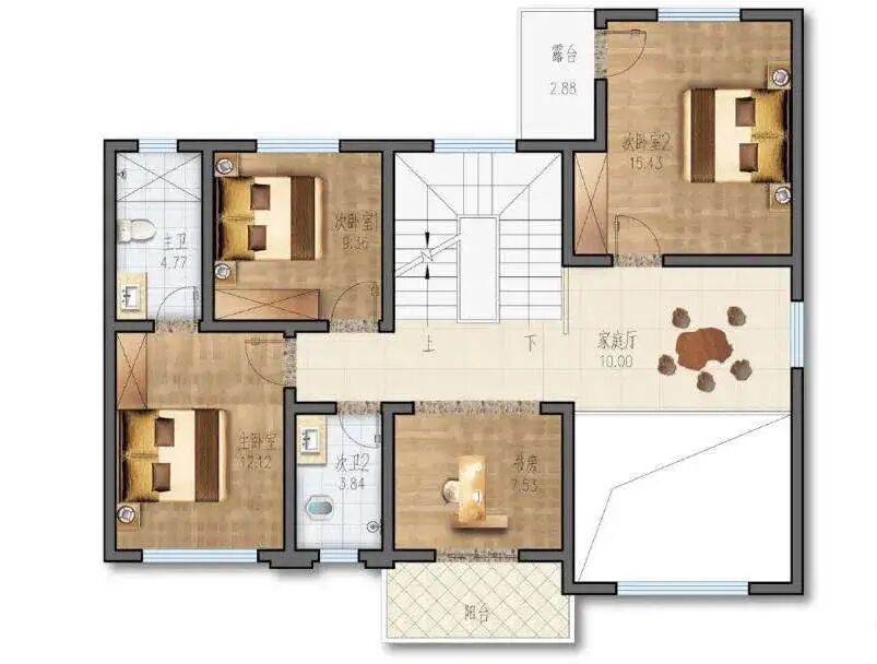本款别墅整体为欧式风格,温馨舒适、造型丰富。复古红色瓦片配合深色文化石,视觉冲击感更强,看上去色彩更丰富。