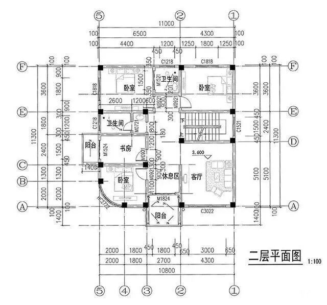 二 层: 客厅、卧室(附卫生间)、2卧室、书房(附阳台)、卫生间、阳台;