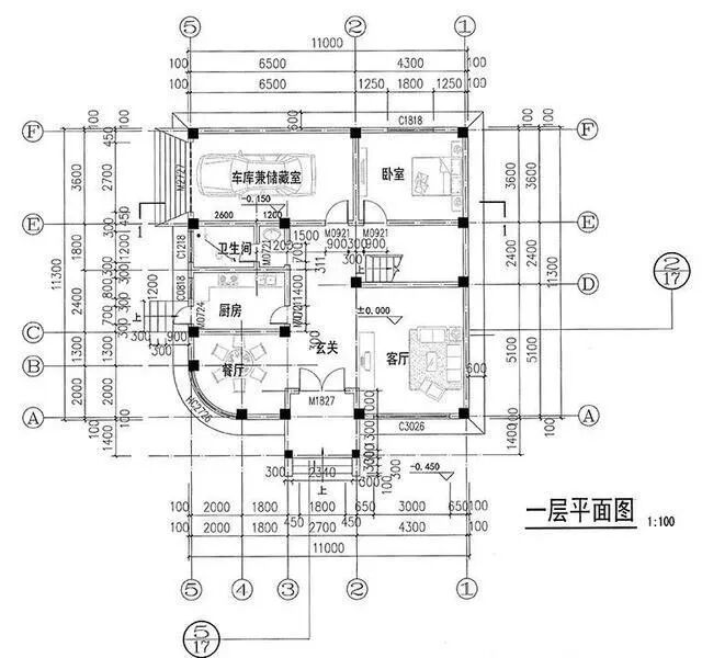 一 层: 客厅、卧室、厨房、餐厅、卫生间、车库或储藏室;