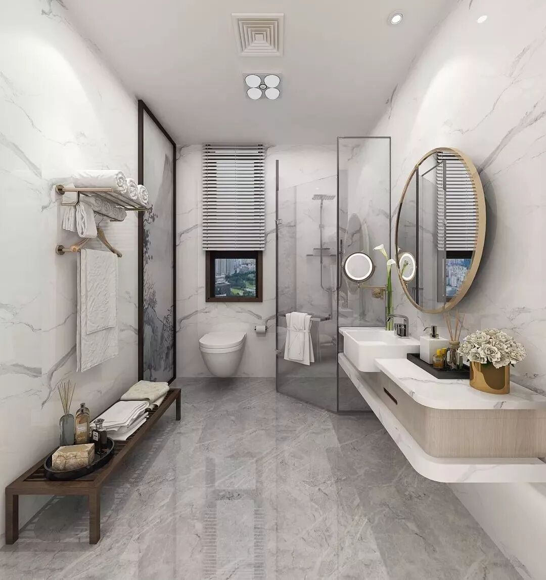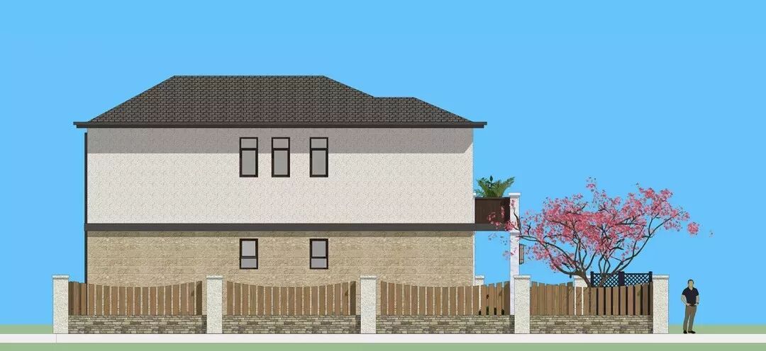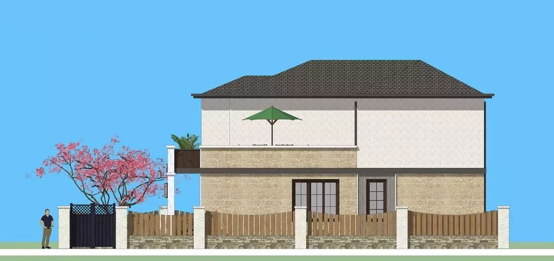 建筑整体为新中式风格,主体以一层大理石配合二层真石漆形成极有质感的外立面。屋顶由四坡屋脊演变而来,一些空间变化让整体层次自然形成。