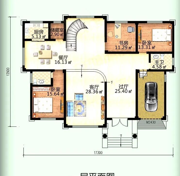 占地尺寸:17.3米×12.9米
