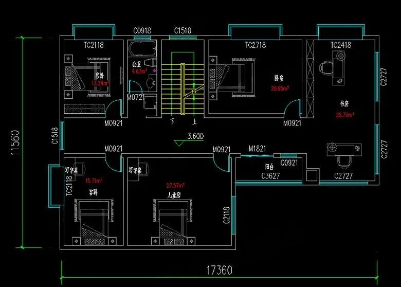 占地尺寸:17.36米×11.56米