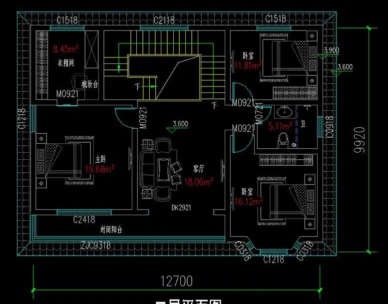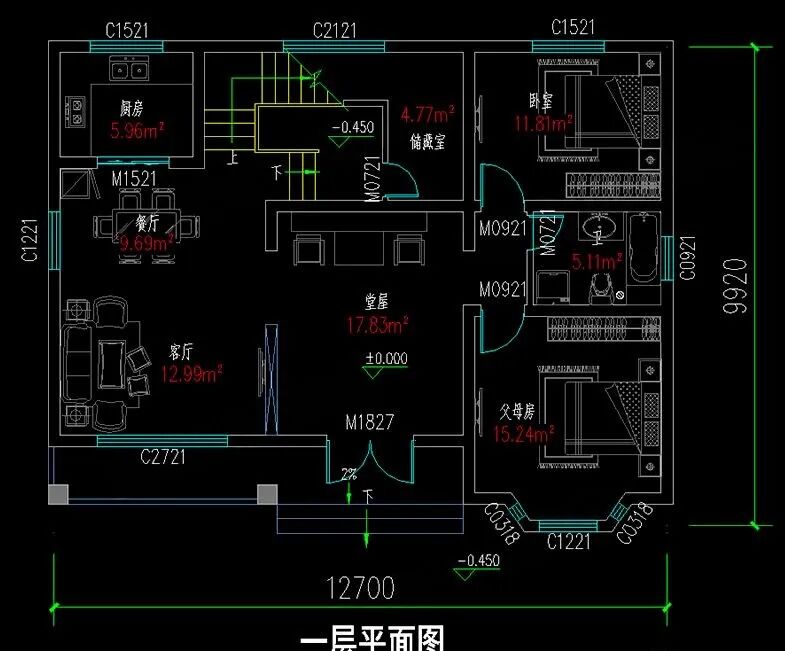 占地尺寸:12.7米×9.92米