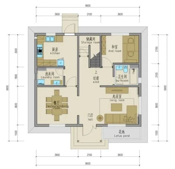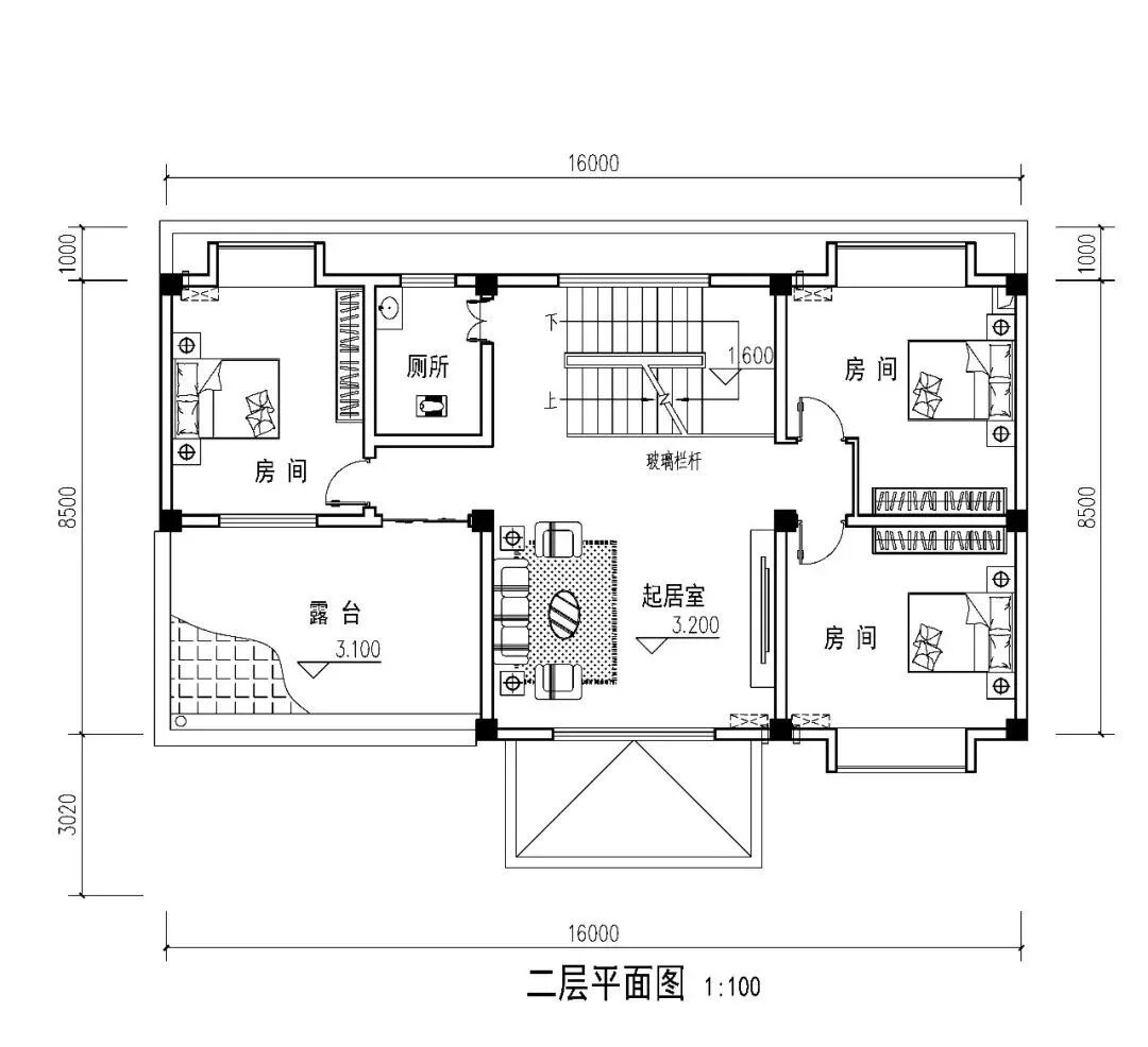 建筑尺寸:10.85m×8.9m