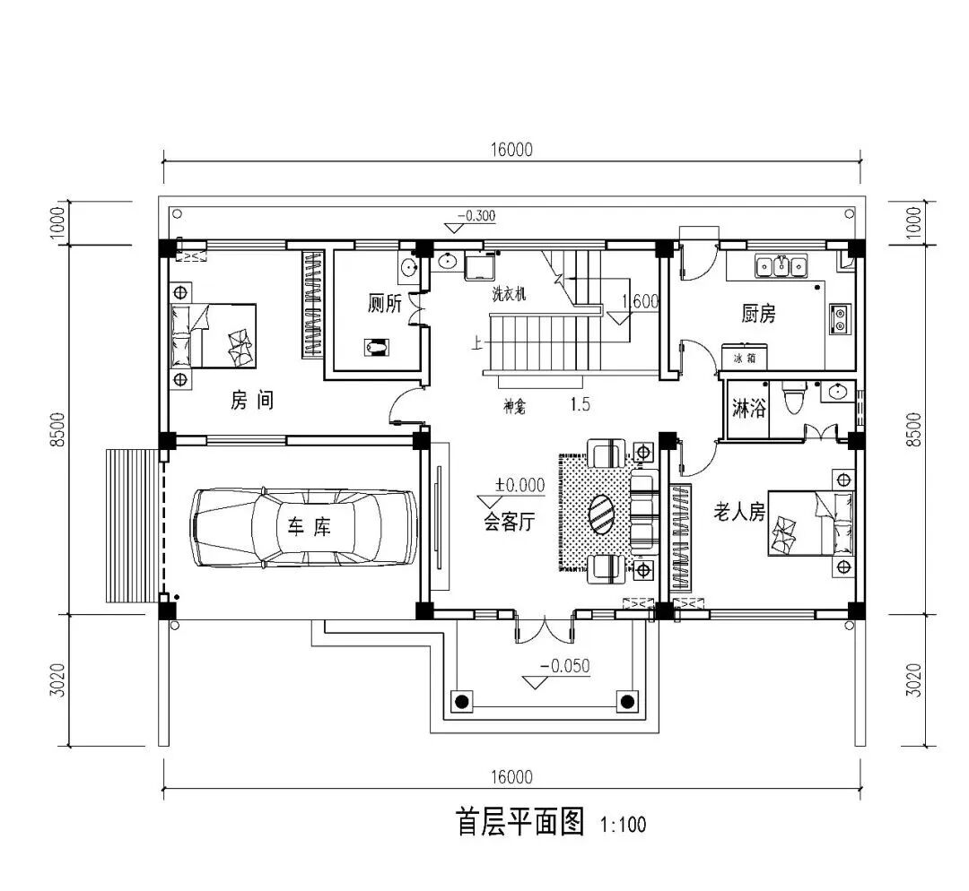 占地尺寸:16米×8.5米