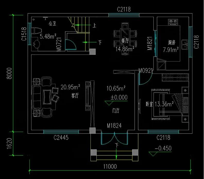 占地尺寸:11米×8米