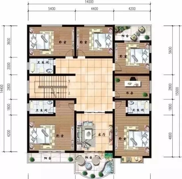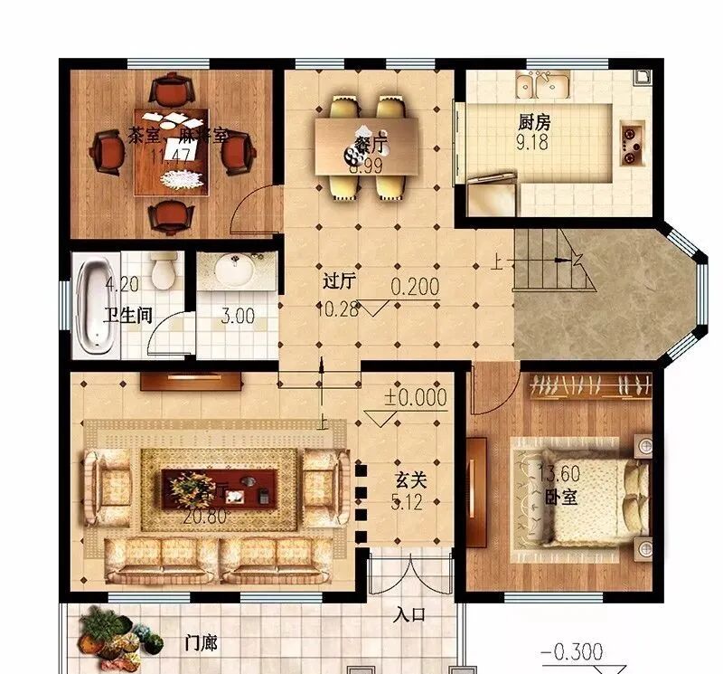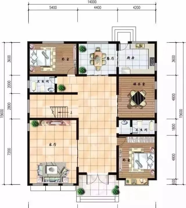 占地尺寸:14米,进深:15.6米