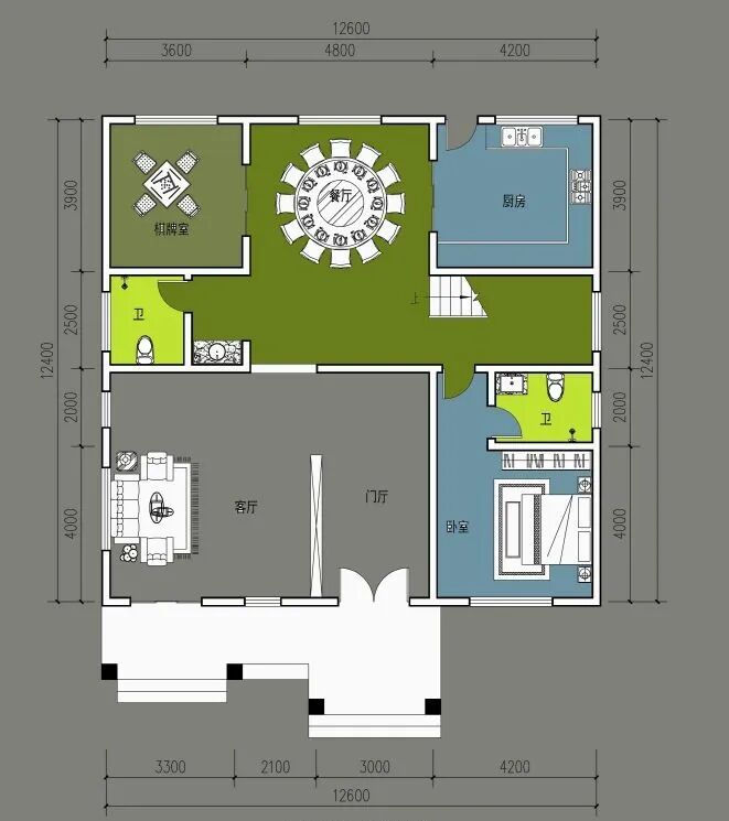 占地尺寸:12.6米×12.4米