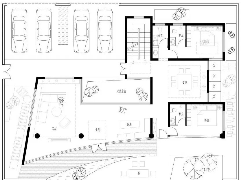 这款别墅更偏向中式风格,线条简约,符合东方传统的留白观念,同时也带有现代流畅的线条,两种风格融入其中,带着一股风流禅意的韵味,与周围景色相互辉映,更有曲径通幽,深深花木之感,堪称山水别墅典范。