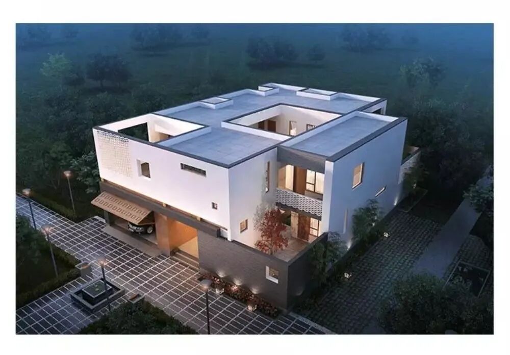 这款别墅设计造型赋予空间冷硬的工艺气息和灵动的现代感,整体呈现出平衡的层次感,体块间的留白扩展开房屋领域,整体更为沉稳,是一款很难出错的现代风别墅。