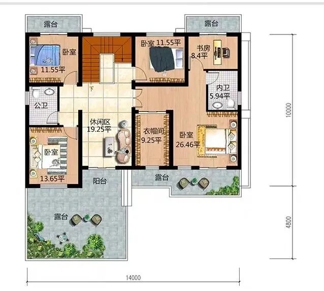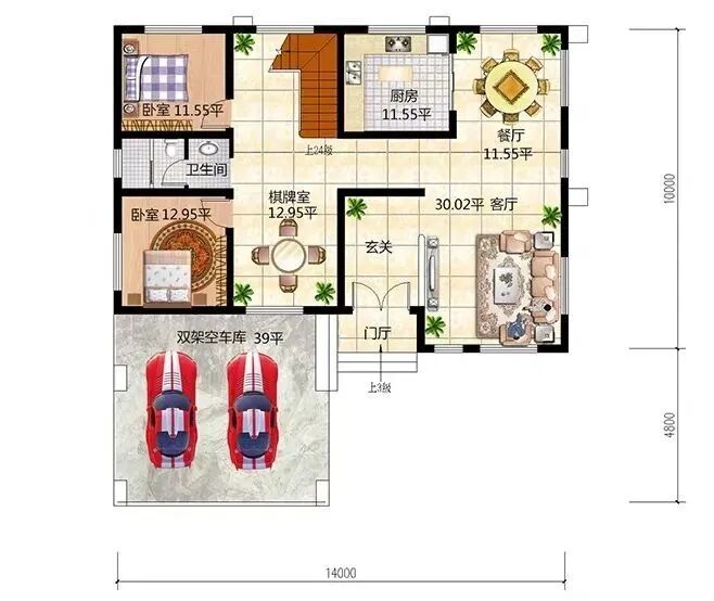 别墅占地:14mX14.8m