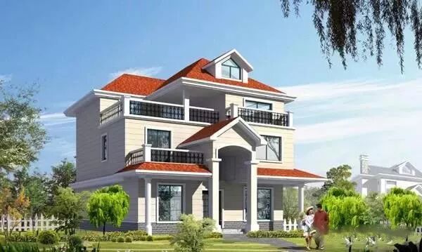 如果说近些年来农村自建风格最大的趋势,大概就是越来越常见的欧式别墅。此套别墅为3层,建筑层次丰富均匀,红色的波形瓦的坡屋顶鲜亮夺目。欧式传统的门亭,老虎窗,门廊都在设计中体现。建筑卧室的窗朝南开,采光通风都十分便利。