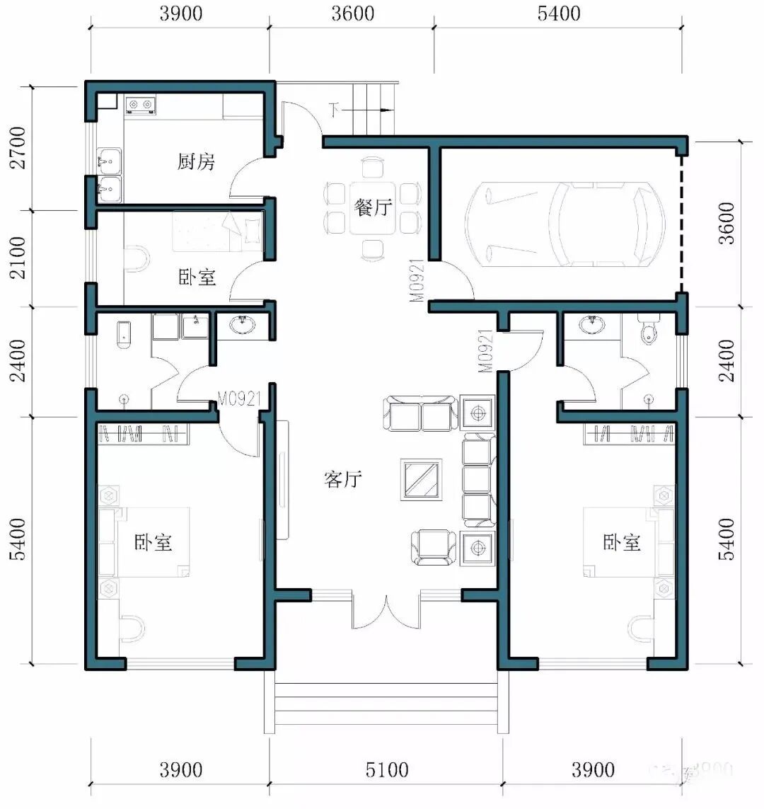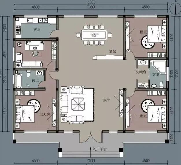 占地尺寸:开间16米 x12米