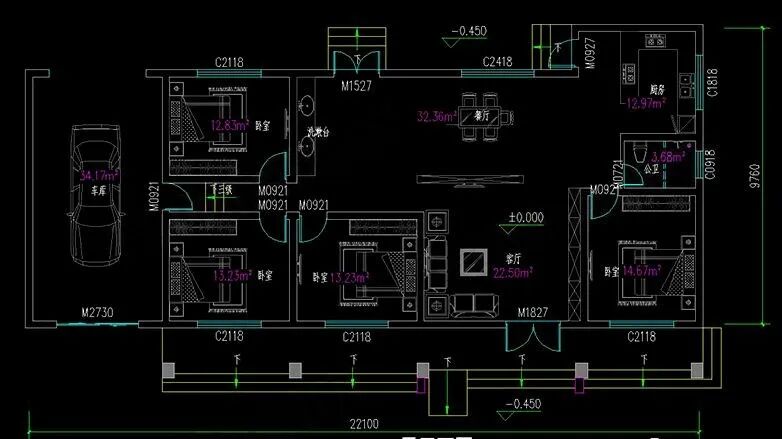 占地尺寸:22.1米×9.76米