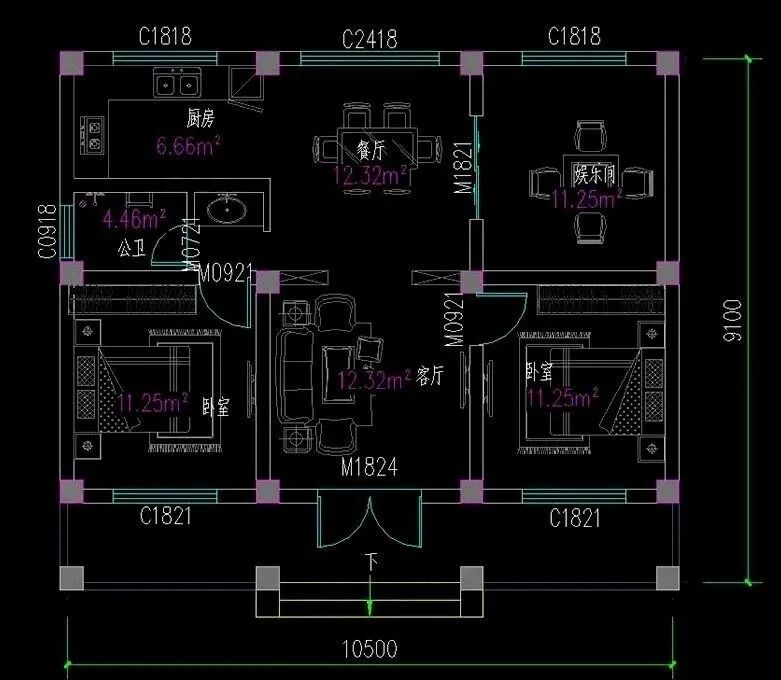 占地尺寸:10.5米×9.1米