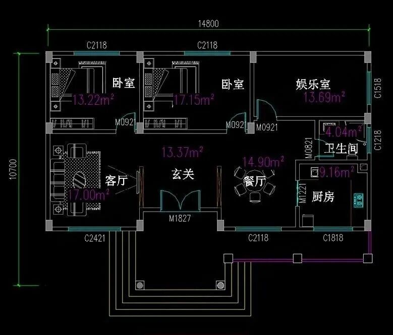 占地尺寸:14.8米×10.7米