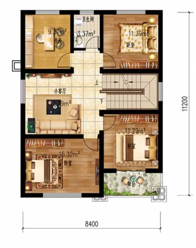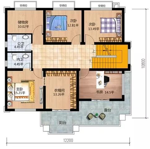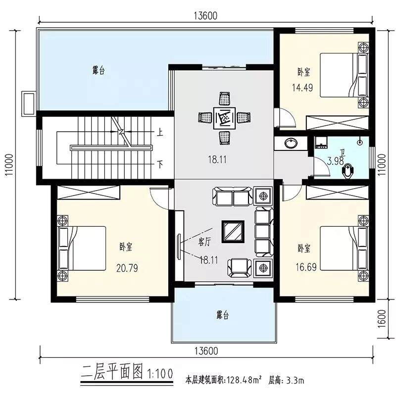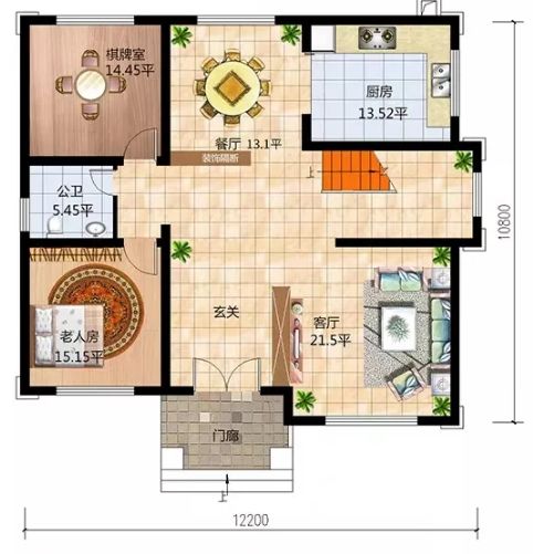 开间:12.2米 进深:10.8米 占地面积:134.09平方米 建筑面积:260.18平方米 建筑层数:2层 屋顶形式:坡屋顶 |