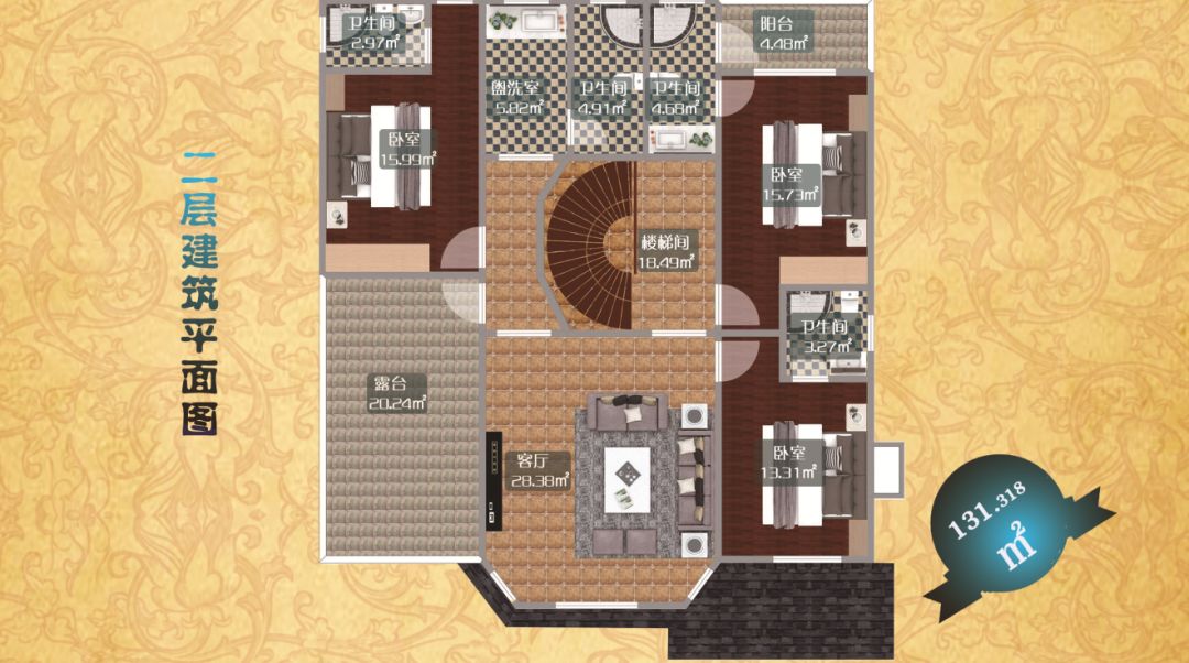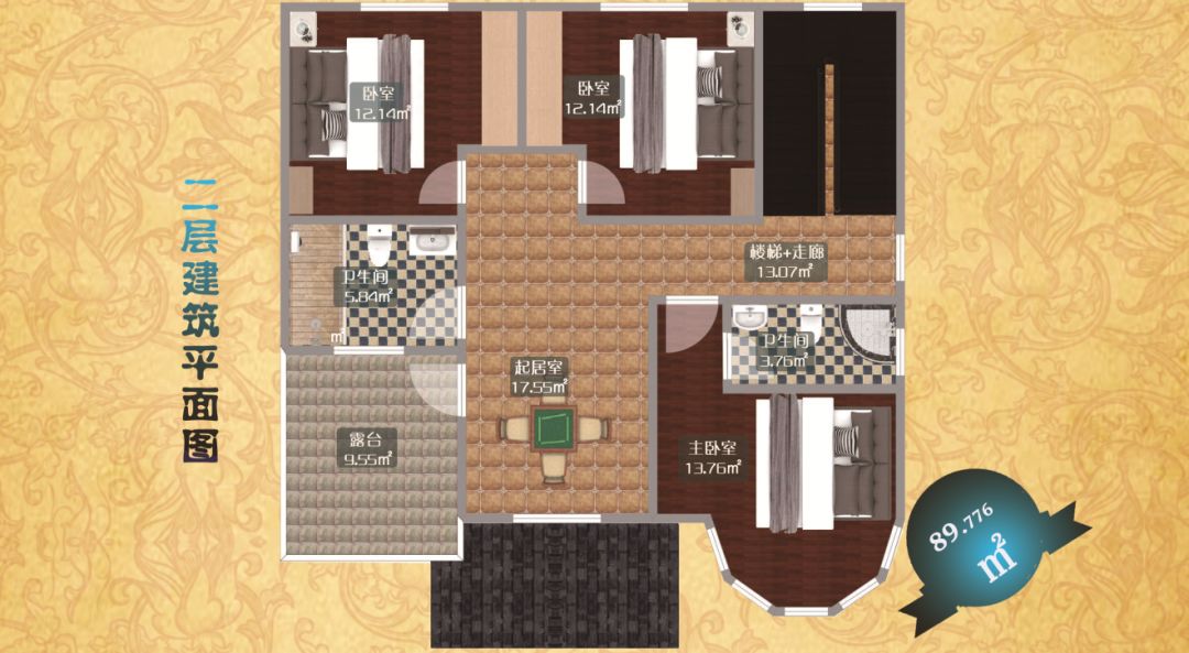 二层多卧室设计,即便是一个大家族的人住在一起也能舒适居住。