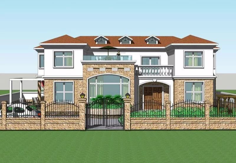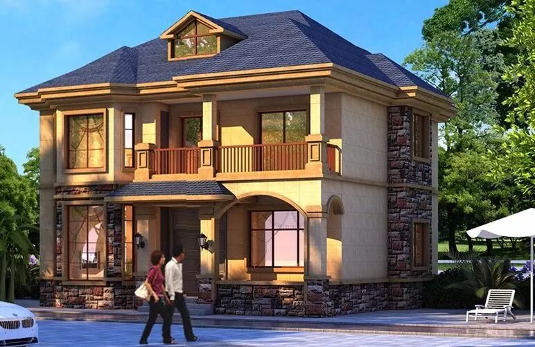 ●设计说明:外墙采用金属雕花板与条石结合方式,房间功能设计实用方便,轻钢结构使建筑面积比传统多出四分之一,室内宽敞明亮。