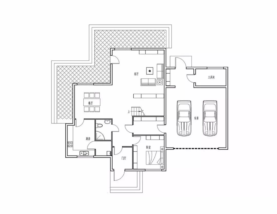一层:门厅、客厅、餐厅、厨房、卧室、卫生间、储藏室、车库、工具间;