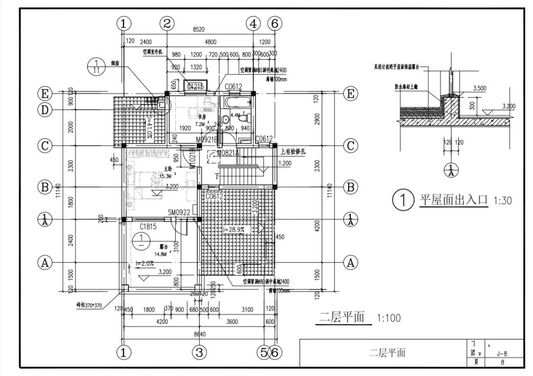 二层:卧室×2、主卧(带独卫)、露台×2、卫生间。