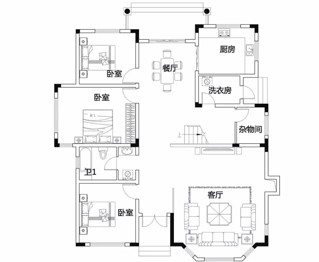 一层:玄关、客厅、餐厅、厨房、洗衣房、杂物间、卧室×3、卫生间;