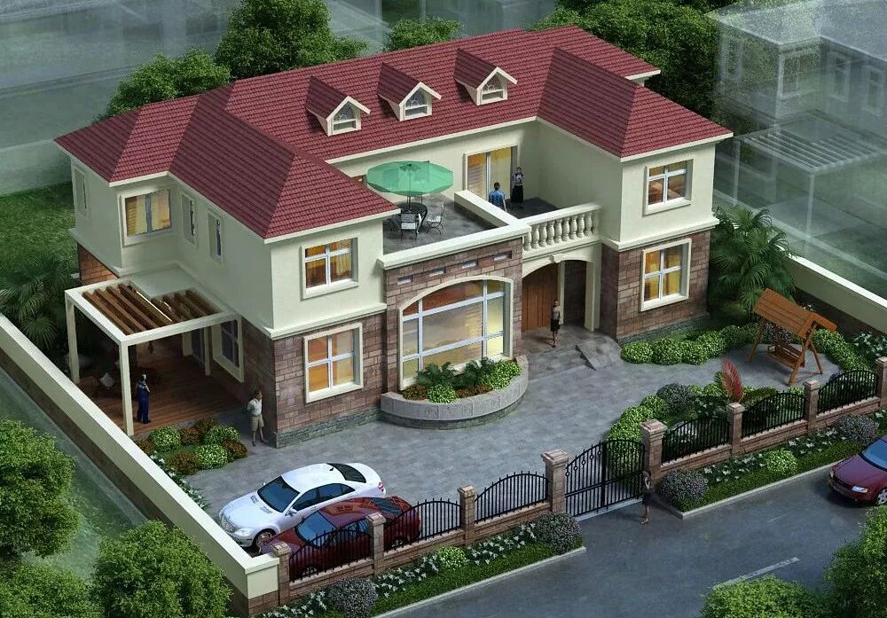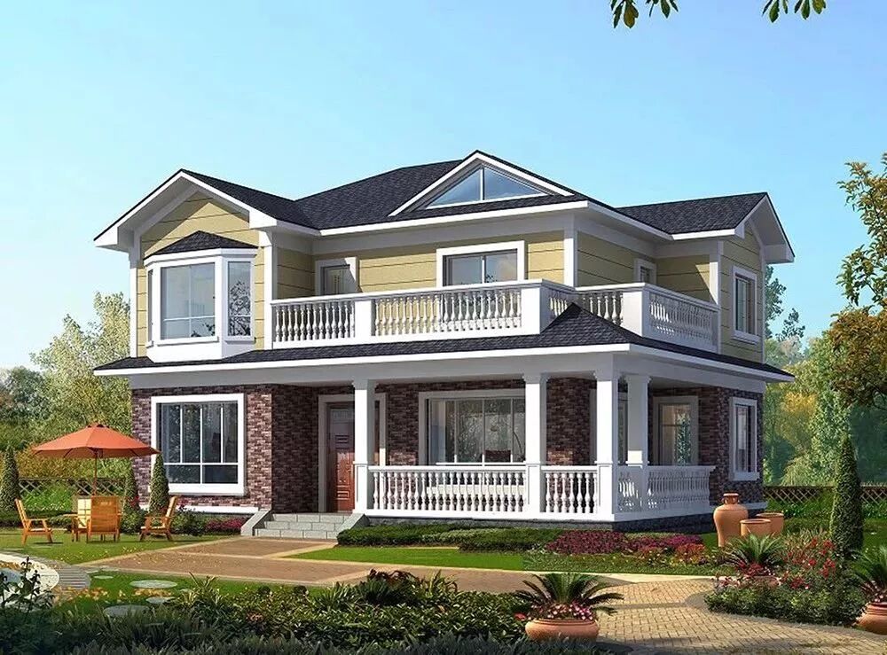 ●设计说明:细节之处体现品味,米黄色外墙与深红色屋顶搭配,凸显更强的空间立体感。房屋功能齐全,车库、门廊、娱乐区、书房、老人房等应有尽有。