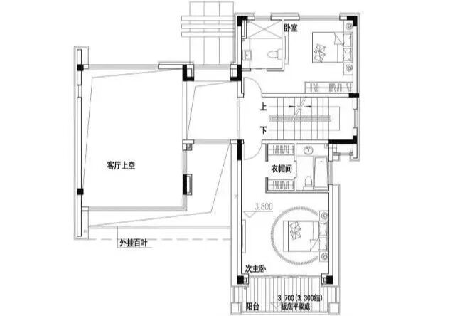 二层:卧室(带独卫)、次主卧(带衣帽间+阳台);