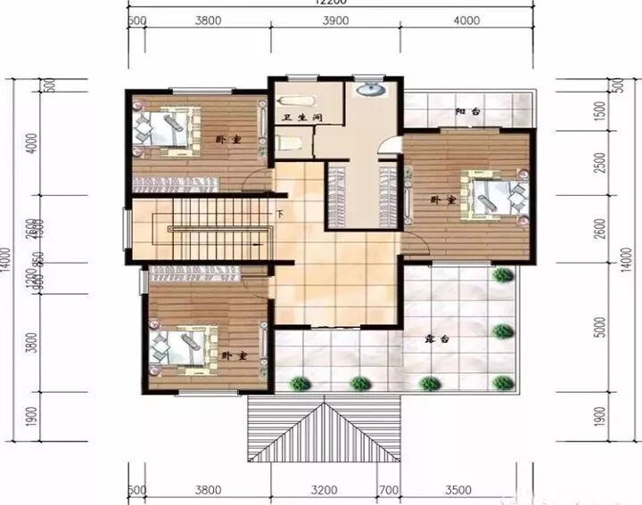 二层:卧室×3、起居室、卫生间x2、书房、阳台。