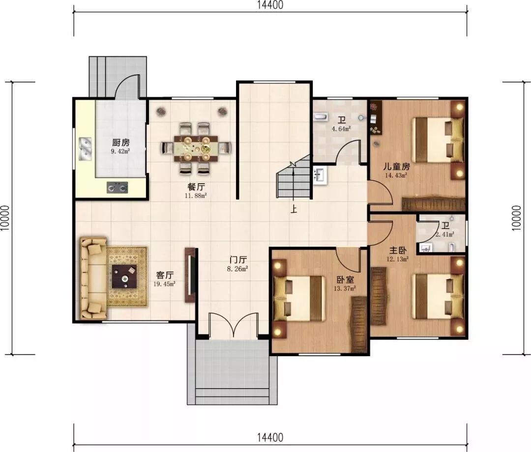 占地尺寸:14.4m(开间)*10.9m(进深)