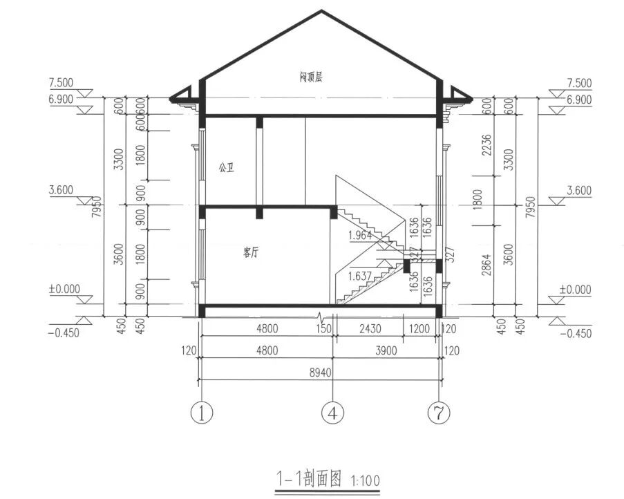 一层设有一室三厅两厨一卫,双跑的直角楼梯设计。