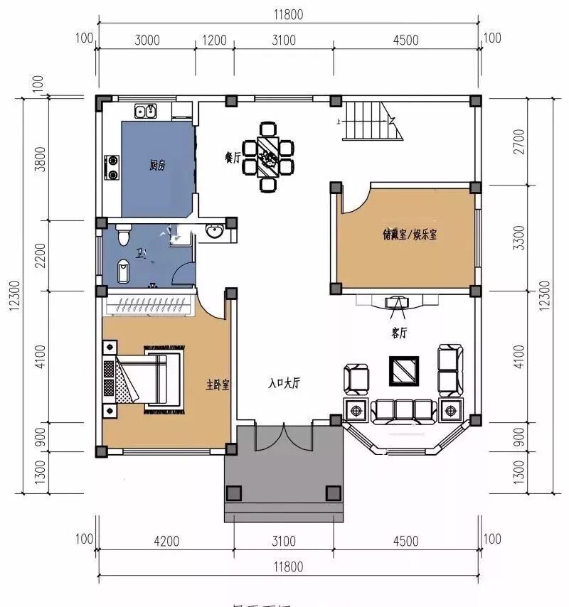 占地尺寸:11.8米x12.3米