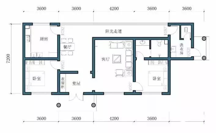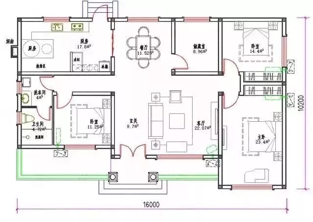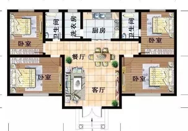 一层设有:客厅、厨房、餐厅、卧室×4、卫生间×2、洗衣房