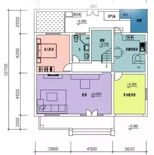 建筑占地尺寸:11.9mx12.7m