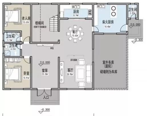 一层:别墅的第一个要素是整个空间的使用功能要合理,格局的不合理性会影响整个空间的使用。这款别墅格局布置合理,欧式风格与中国南方传统风格相结合,堂屋神龛的设置与通告客厅的设计,传统而不失华贵,整体设计优雅新颖,实用型极强,不落于俗套。棋牌室的位置更是妙极,南方农闲时和过年时必然要是凑在一起玩牌打麻将的,棋牌室的设置戳中了我的心,想必也戳中了您的心吧?柴火厨房与现代厨房共存,平常嫌麻烦就用现代厨房,馋嘴的时候就用柴火厨房做一顿含有木柴香味的饭菜,对于父辈来说,柴火厨房还可以用来晾腊肉,过年的时候柴火厨房处理大量的食材是非常方便的,功能多样。