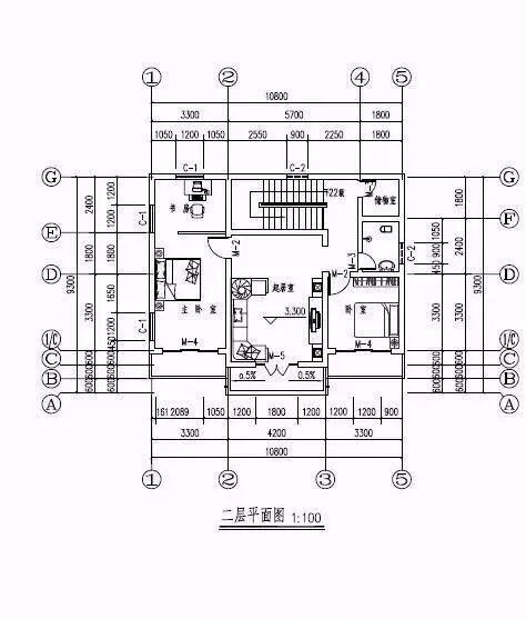 二层:起居室、卧室、卫生间、储物室、主卧室(附阳台和书房)。
