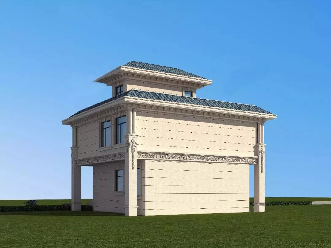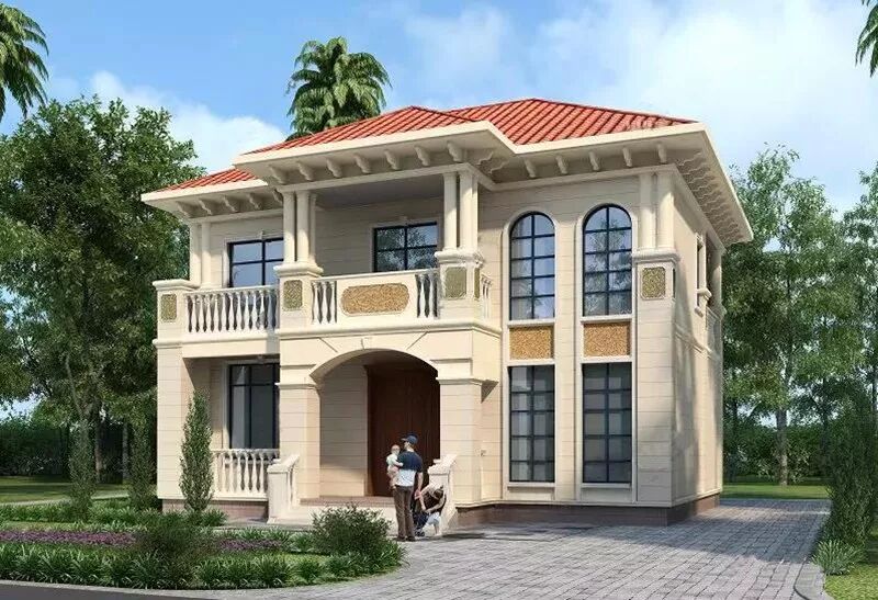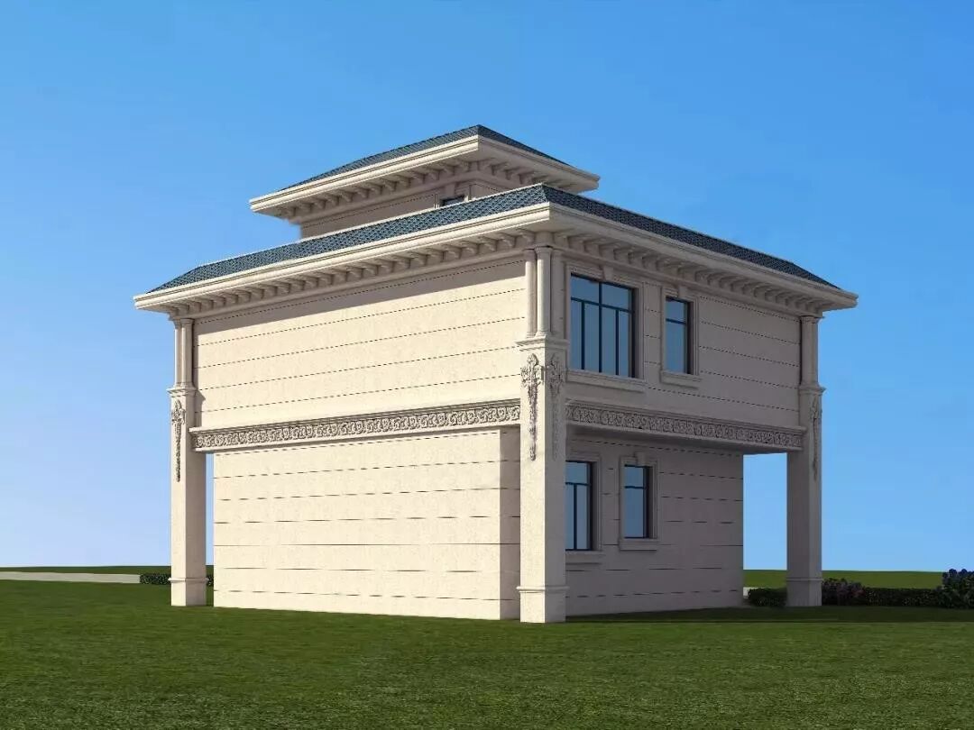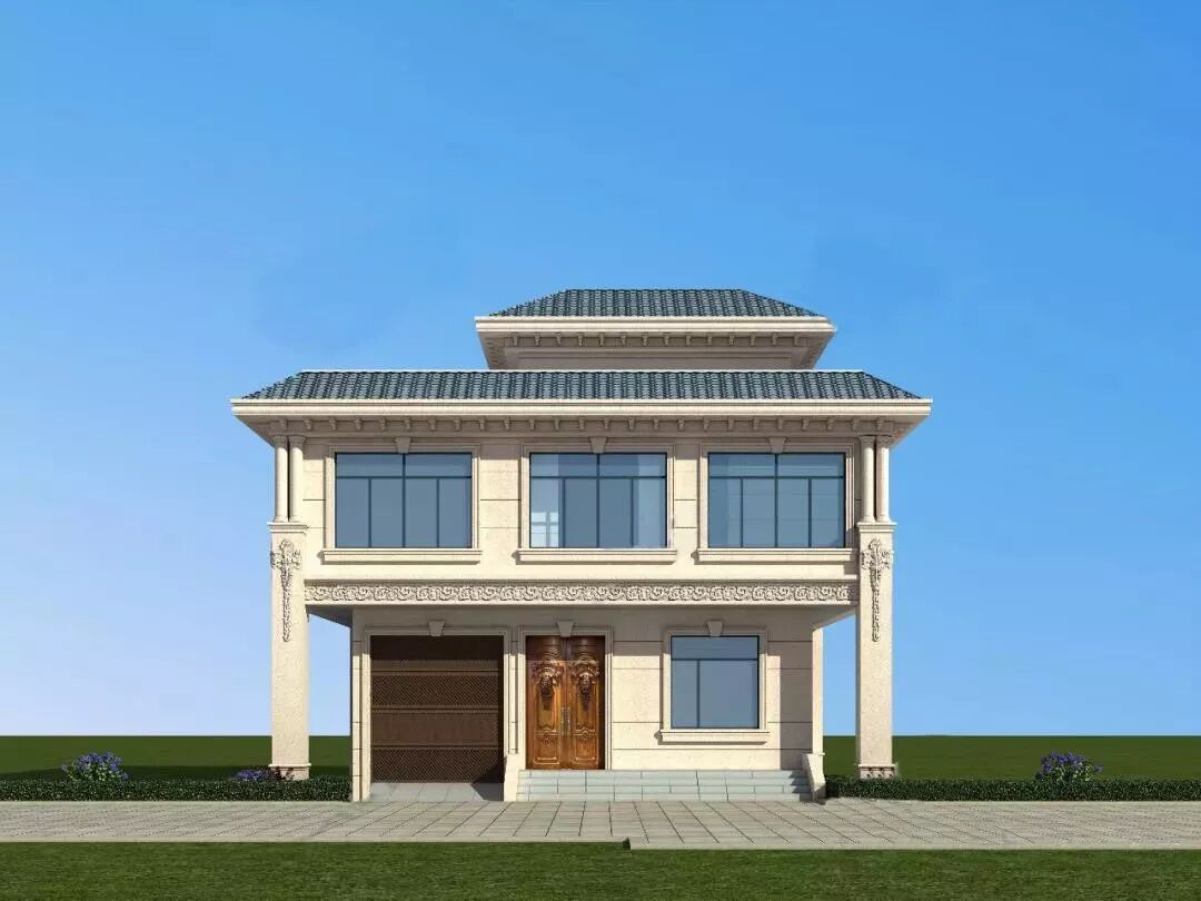 大气的罗马柱,一改平时大家经常见的圆柱,采用了方柱,玻璃窗也采用几种造型穿插、对称设计更美观。精致的雕花,真石漆外墙,以及红色坡屋顶和下方的装饰,哪哪看着,都好看。