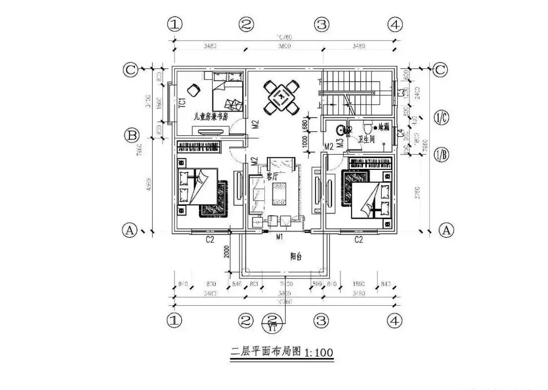 二层平面图: