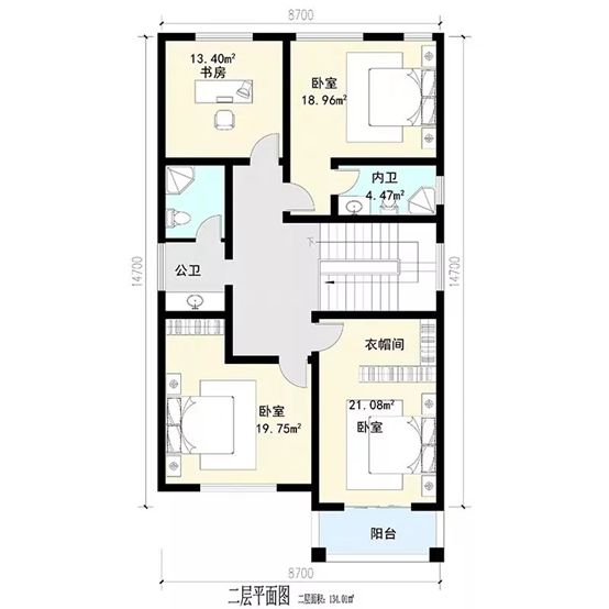 二层:3卧室、书房、衣帽间、2卫生间、阳台。