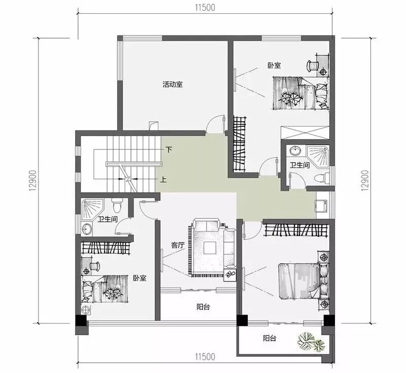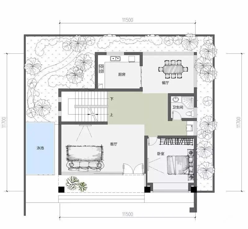 占地尺寸:11.5米×11.7米