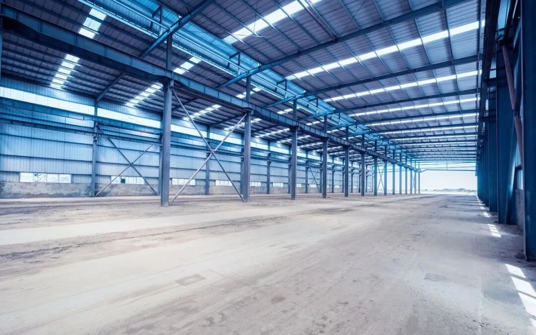 厂房大部分采用的是门式刚架结构体系,主要靠刚架斜梁、刚架柱、支撑来承担荷载,柱距6-12m,跨度12-30米。直观的看,门式刚架的柱子很简洁,而轻钢别墅的柱子很密集,形象的讲,门式刚架就像一位大力士托举一根大钢管,而轻钢别墅就类似于多个小个子肩扛一根大钢管。门式刚架的屋面檩条一旦被雪压坏,刚架梁就失去了平面外支撑,在檩条的拉扯下会发生失稳破坏。门式刚架的屋面通常只有彩钢板,加上钢梁、檩条等自重一般为0.3千牛/平方米。