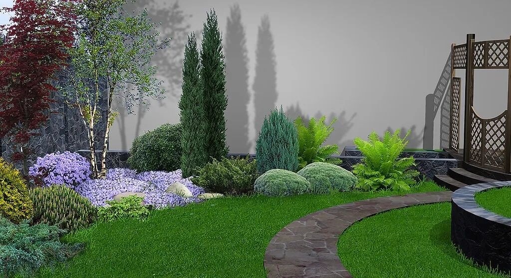 只种植一种植物未免显得太过单调,可以种植不同的木本植物和常绿植物: