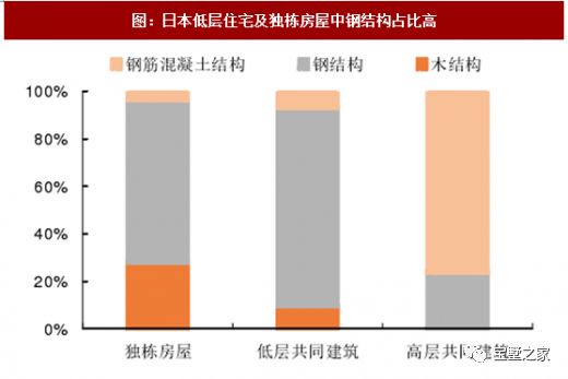 图:日本低层住宅及独栋房屋中钢结构占比高