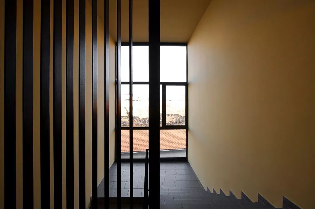 通过顶层部分的收缩,降低了建筑围护结构对公共区域产生的影响。这样的做法让人们能够透过屋顶与窗户百叶欣赏到天空美景。