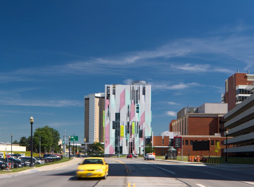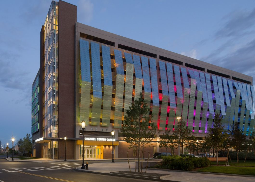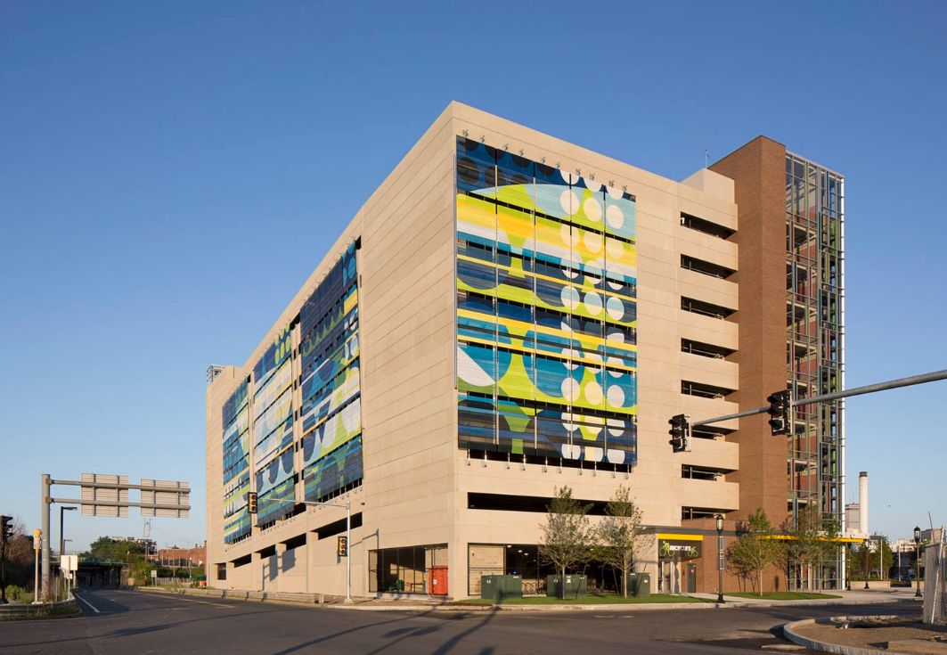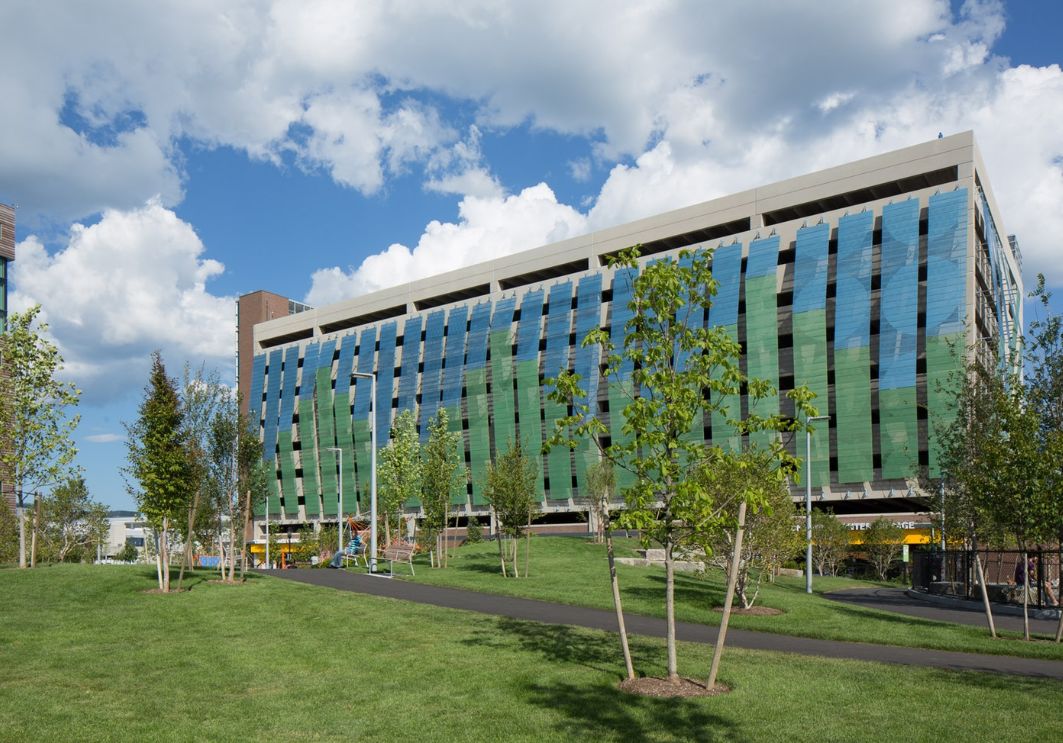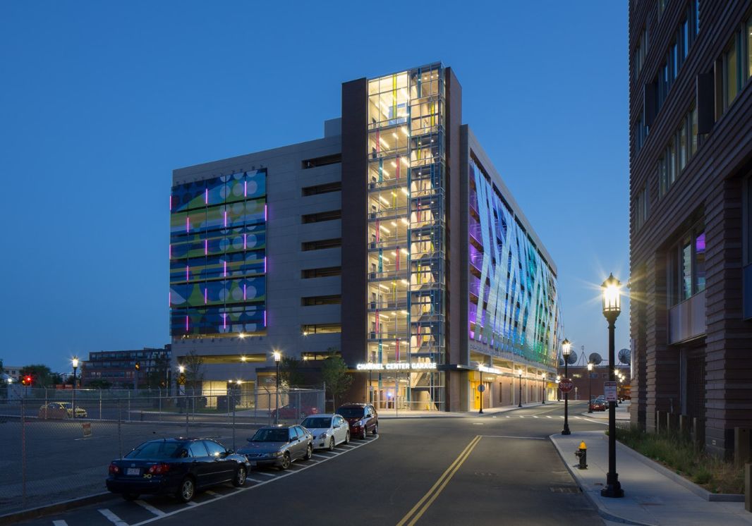 这座位于美国马萨诸塞州的停车楼设970个停车位,内部停车场可停放100辆自行车。
