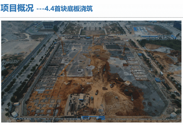 11天完成35万立方土方开挖运输, 40天完成5万平方米 地下室主体结构建设 及9万余立方米混凝土浇筑, 58天完成4.7万平方米 外立面幕墙安装, 61天完成屋面结构封顶及 上部主体1.2万吨钢结构的加工、 运输、吊装任务, 72天完成机电安装及室内精装修